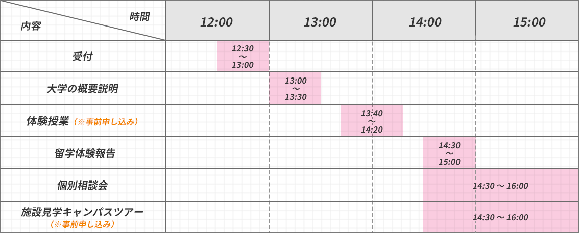 - 注意事項:体験授業等②のメニューの1つとして実施します(新学科説明会に予約いただいた場合、同じ時間に実施している体験授業等②(Control Language - An Overview)はご参加いただけません)。