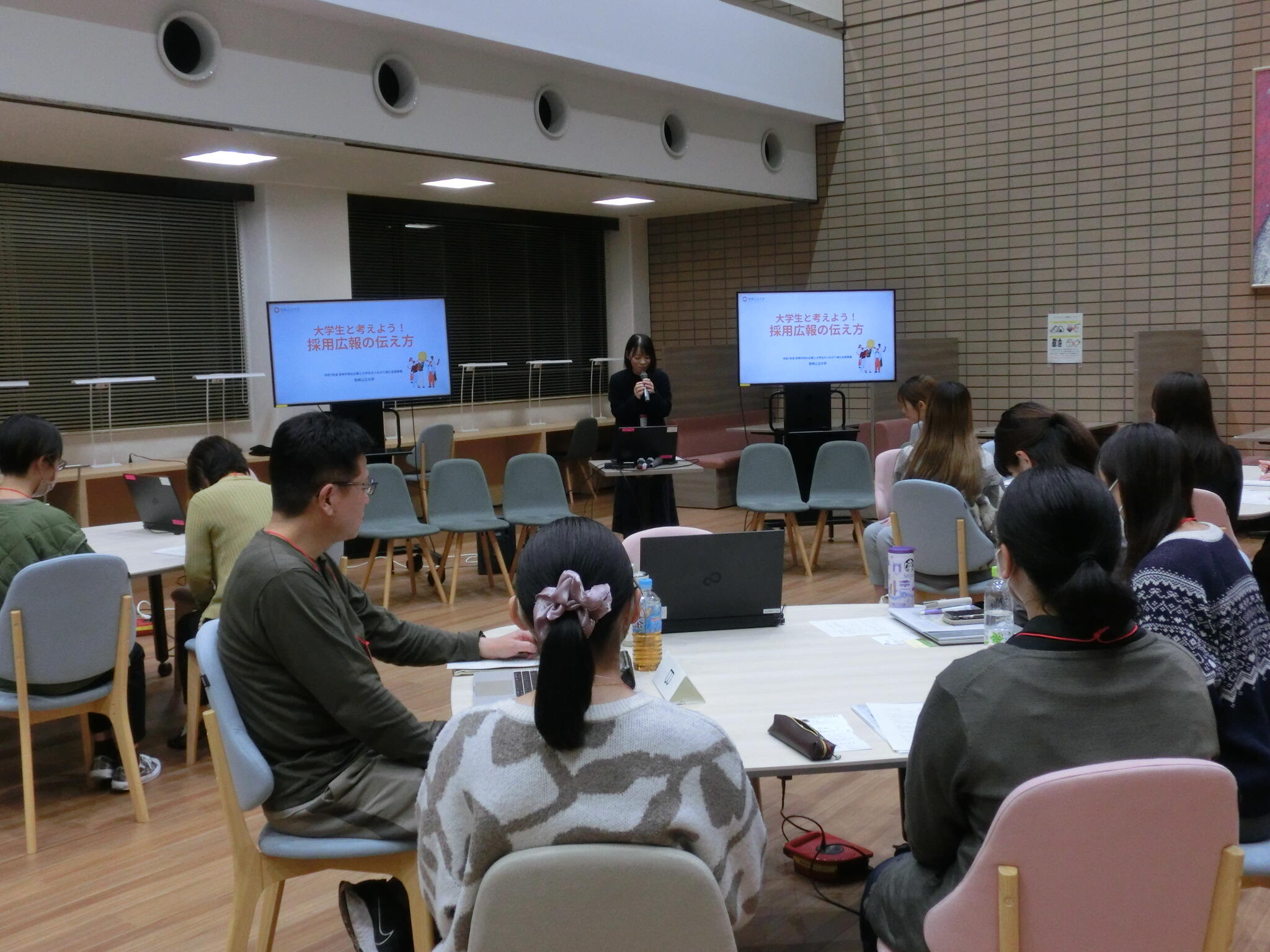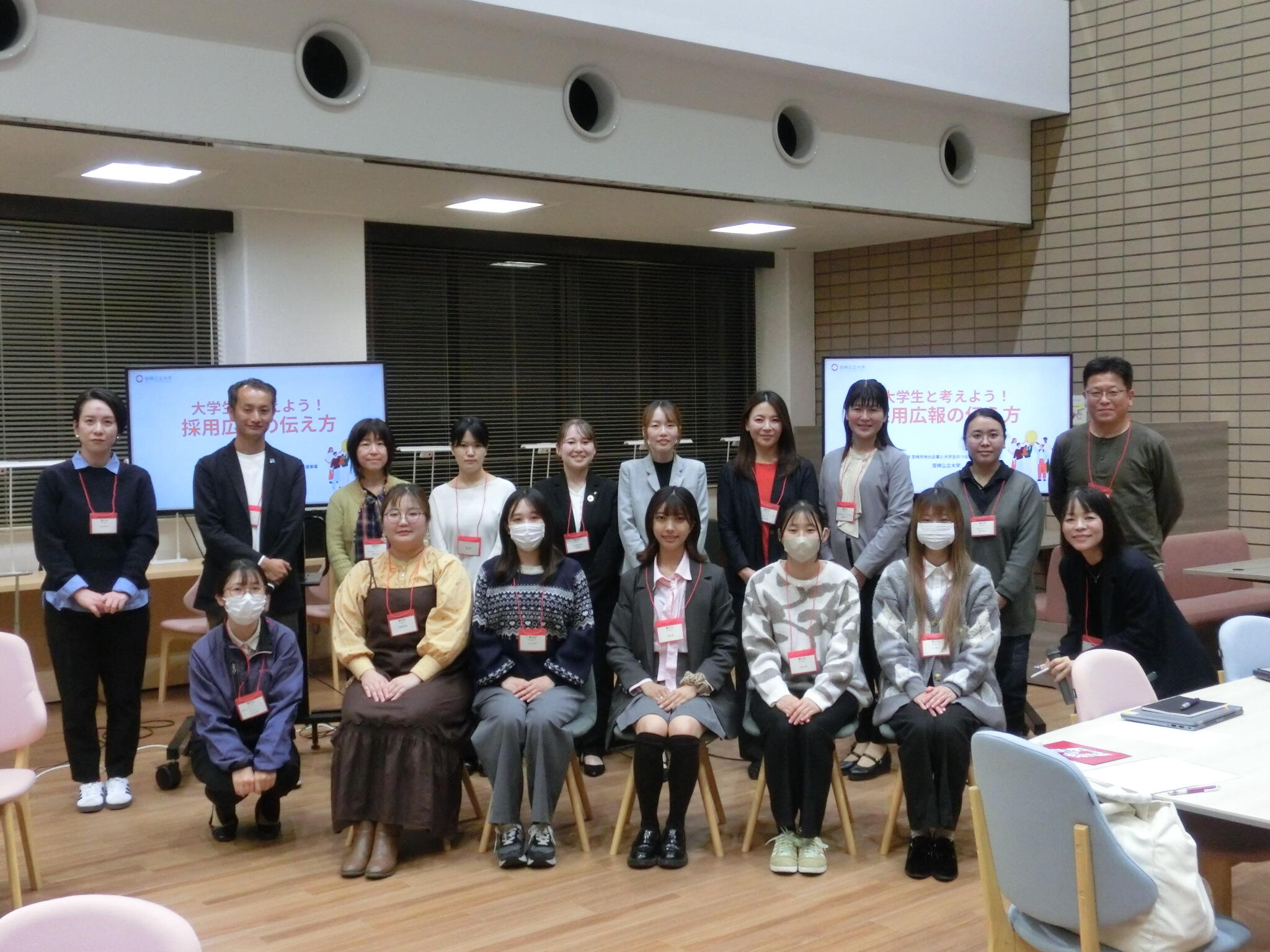 11月26日(水)附属図書館クロスラウンジにて、「大学生と考えよう!採用広報の伝え方」(宮崎市業務委託事業)を開催しました。