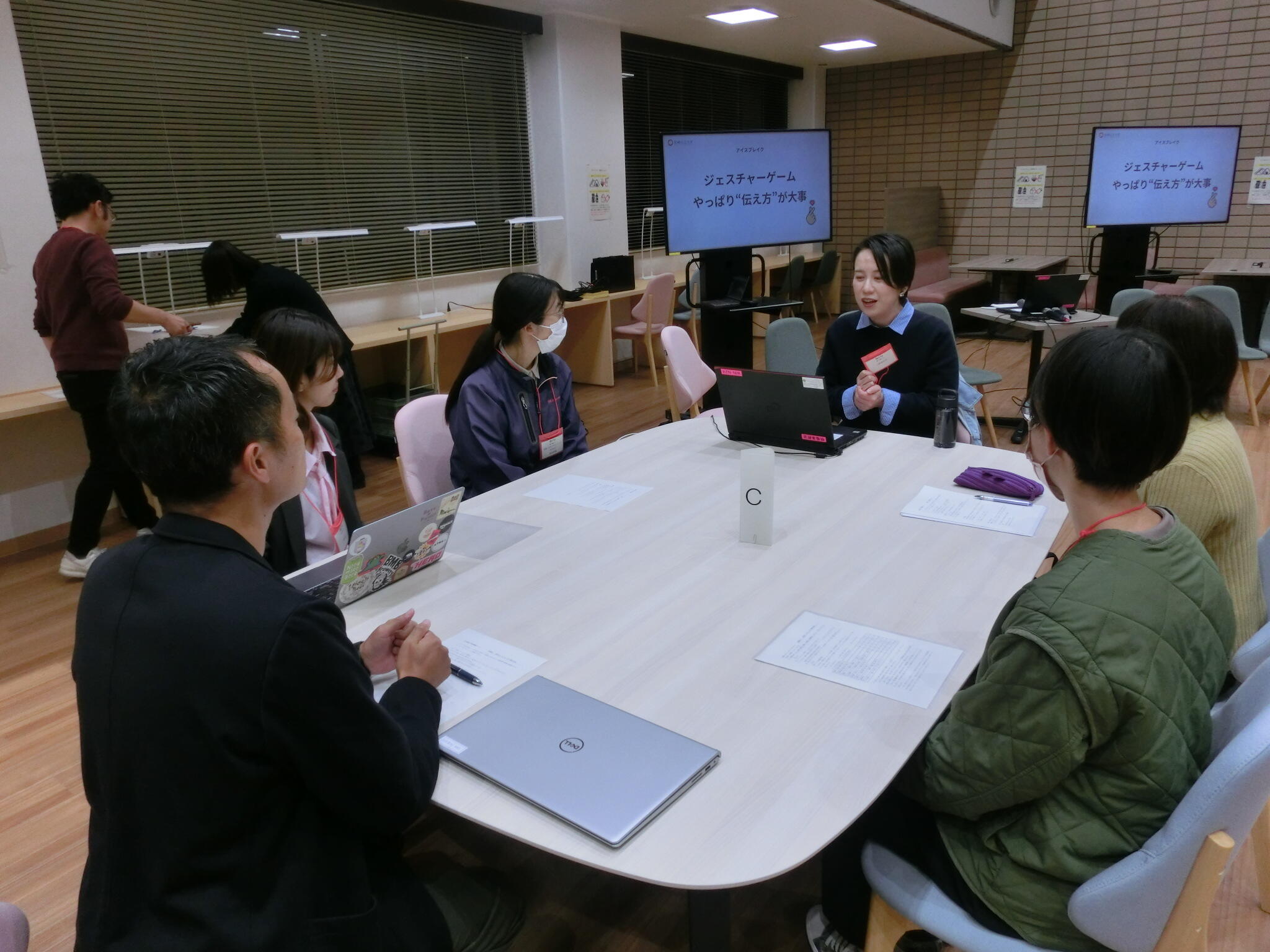 まずは、「伝え方」に着目したアイスブレイクとしてジェスチャーゲームを行いました。